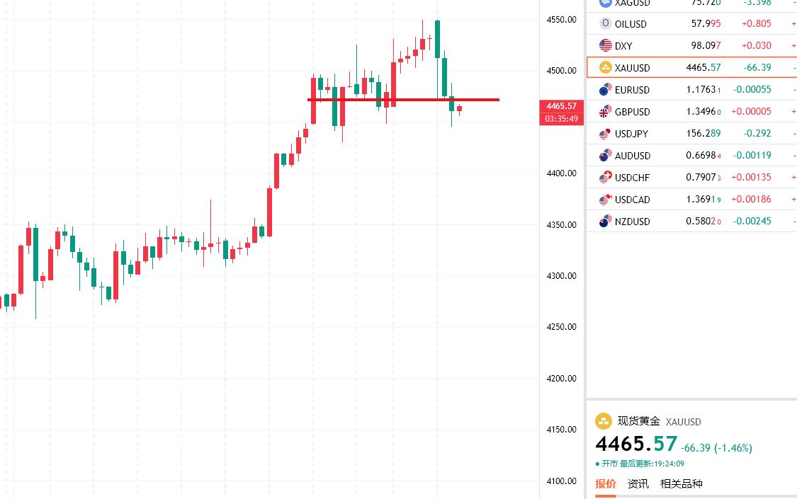 黄金早盘冲高4549一线成功在这个位置形成双顶压制然后一路暴跌触及4472附近然后企稳反抽,反抽最高4520附近如期承压二次回落,欧盘时段二次杀跌一度跌破早盘分享的4470附近强支撑惯性支撑最低触及4445附近然后反抽最高4488附近再度走弱,短期走势上来看阶段性有见顶的迹象,晚间反弹压力位附近继续先空,关注后续回踩企稳情况考虑做一波波段多单看年底多头的延续!