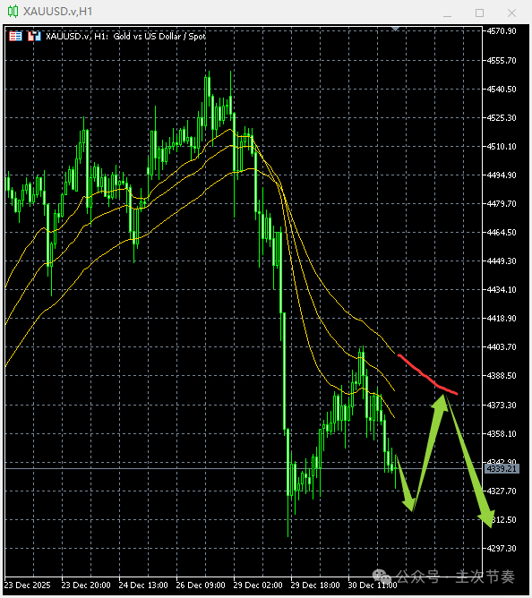 一句话看懂黄金Gold:短线进入低位反复震荡节奏,预示整体回调还会延续。