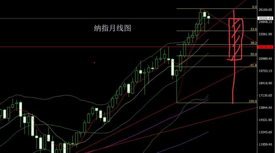纳指市场2025年初开盘咋21003.83的位置后行情先拉升给出阶段性高点22228.33的位置后行情强势回落,年线最低给到了16319.4的位置后在降息的刺激下强势拉升,年线最高触及到了26262.47的位置后行情整理,,年线最终收线在了25220.43的位置后,年线以一根下影线极长的大阳线收线,而这样的形态收尾后,2026年依旧有看多需求。