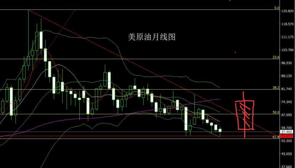 美原油市场2025年年初开盘在71.905的位置后行情先拉升给出80.904的位置后行情强势震荡回落,年线最低给到了54.962的位置后尾盘拉升,年线最高触及到了57.465的位置后,年线以一根上影线稍长的于下影线的大阴线收线,而这样的的形态收尾后,在技术上2026年承压,但如何能继续下行要看俄乌冲突的结果,在目前促和的背景下,一但战事结束,那么大鹅解除制裁后必然会大幅扩大原油和天然气的出口量,那么价格再次回落将成为事实,否则的话在美联储主席换人在即,美指大幅回落的背景下,原油价格将被托升。