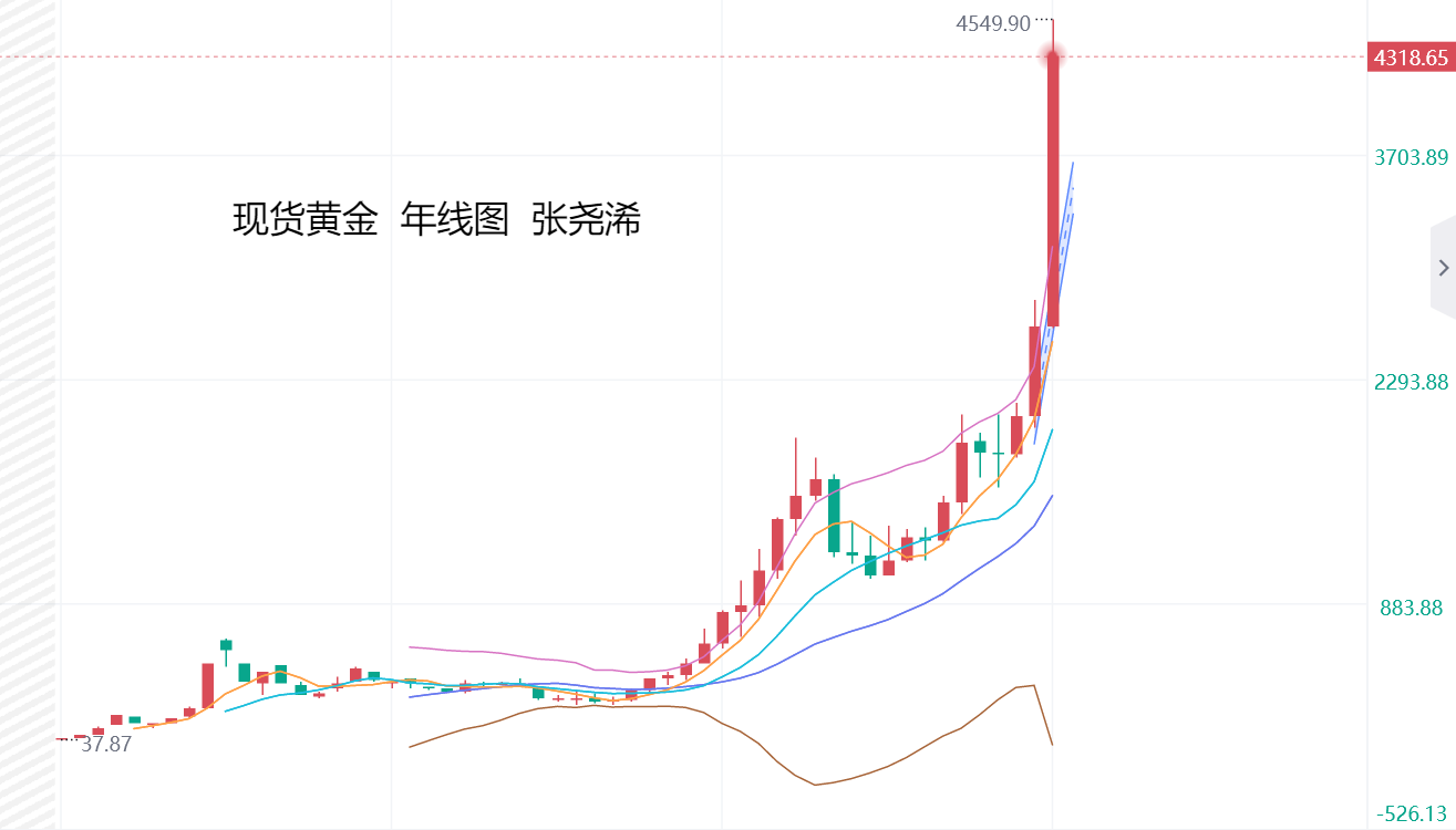 基本面,2025年的基本面市场最大的基本面变数就是美国新人总统上台后的不靠谱政策,1是全球话的对等关税,导致全球市场避险被推升,2是美国的美债危机持续严重,现任总统为何会加增关税以及上任之初成立政府效率部的主要目的就是为了缓解已经高达38万亿的美债危机,但美国内部的利益集团已经根深蒂固,所以在强烈阻力甚至是共和党内部大不部分反对的的背景下不得不中途终结,而这样的结果也只会让美国的美债危机将在2026年继续成为全球风暴的主题,3是其上任之前曾表态一周内解决俄乌冲突,但最终结果是2025年已经过去但依旧没有解决问题,4是中东危机在年终爆发,其根源是美国支持的以色列不断侵占巴勒斯坦领土导致的反抗,使得中东局势混乱,而叙利亚易主的根本原因也是俄乌冲突的下大毛无暇他顾,所以阿萨德政权瞬间倒台也是大毛俄乌战争的必然结果,其势力范围和能源架构被蚕食,而年末脚盆鸡家右翼政府上台对龙国大言不惭下,龙国也在等待其自投罗网,如果2026年其不听管教那么新仇旧恨将让这个无耻国家消亡,所以2025年现货黄金大涨约64%,白银大涨147%,铂金大涨128%,钯金大涨77%。美元指数DXY全年跌超9%,录得2017年以来最大年度跌幅。美元走弱主要受美联储降息、政策与政治不确定性、财政压力加剧以及全球资本向非美资产流动的推动。新的一年首先面对的就是美联储主席即将换人,而这也意味着舒服懂王的最后一根绳索被挣脱,美指大幅回落的预期以及全球放水的背景下,通胀将被推升,而这也意味着全球化的经济危机将被更快的引爆,而历史经验教育我们一战和二战的引发也是这样的危机导致的,金银价格的暴涨除了美元信用下降以及美联储降息的预期之外,更大的因素是全球央行的避险操作以及中国为首的的国家大幅降低美债增持黄金的因素,相信2026年这一趋势依旧会得到延续,逢低做多贵金属和金属类商品依旧是主题。