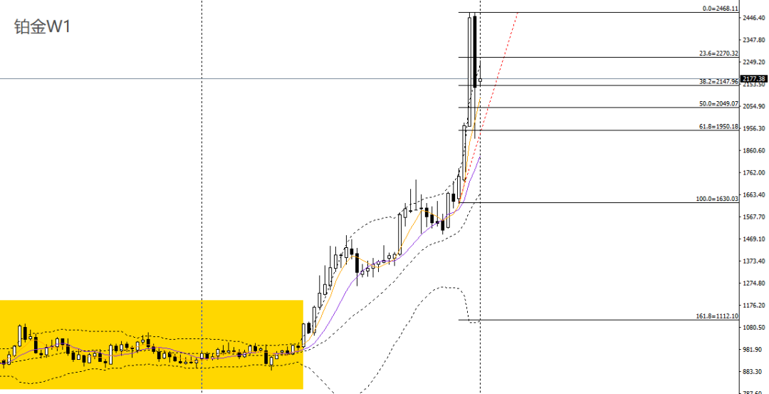 铂金上周大幅受挫,2470附近面临强压,仍受5周均线依托,波段仍有望继续破高。周五收涨,今日亚盘冲高回落,仍徘徊于5日、10日均线附近,日线RSI回落,4小时呈头肩底,2100上方可延续低多思路。