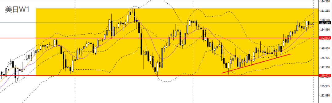 美日上周微幅收涨,仍立于10周均线上方,波段有望继续上探前高。周五小幅回升,立于5日均线上方,日线RSI位于50之上,4小时升破157关口压力,短线趋势进一步转强,157附近企稳可继续进多。