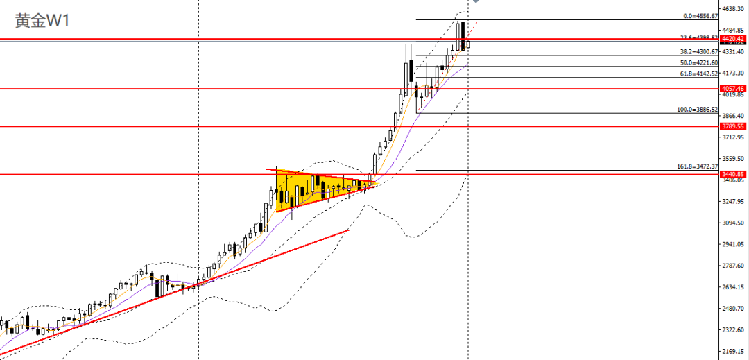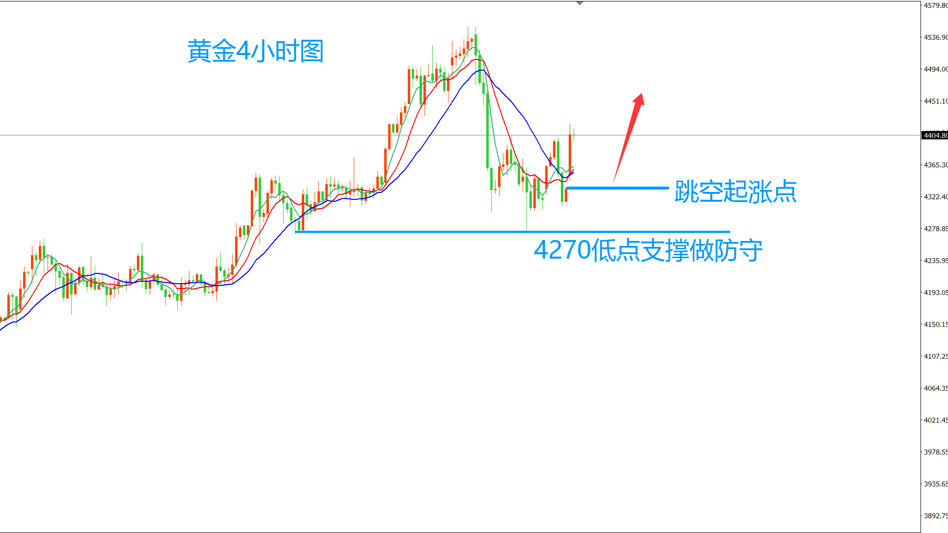从黄金4小时图来看,当前4425-4430区域仍是比较关键的压力带,今天在这之下继续执行高空策略!!!