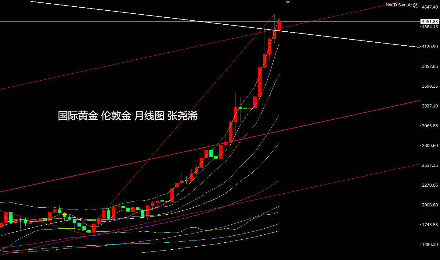 反之,如本月再度收取倒垂至趋势线之内,则需留意后市有再度展开较大回调,去回踩4000-3900美元区域或更低位置的风险;
