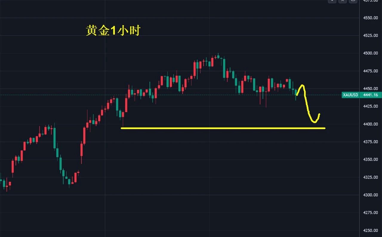 现在整体行情高位震荡,仍然处于观望态势,昨晚虽然出现下跌但也没延续,以4480美元为压力震荡式下调,可能在等这次指数权重调整,谁也不想在这个时候去接刀子,今天重点还是观察4480-4500美元的防守区域。今天我的观点是跟随回落看空,以4480上面作为止损防守区域,向下破位4430的下一站是4410-4406美元,只有一次像样的调整才能为2026年真正的牛市铺平道路,否则盛极必衰。