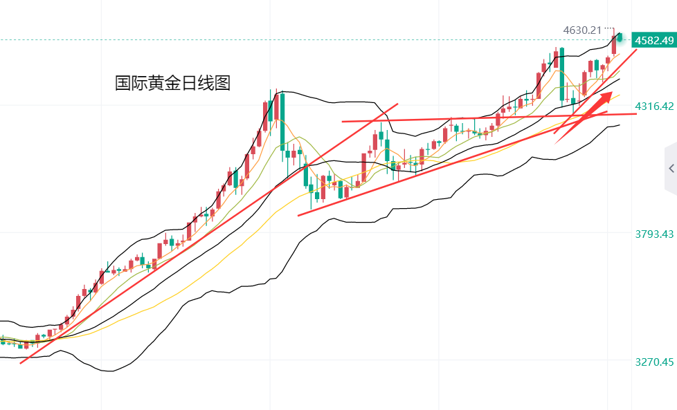 昨天黄金上冲无力,行情在4570-4635之间来回穿梭,尾盘走弱,日线图最终收低,说明短线空头占据上风,今天回落的概率较大!!!