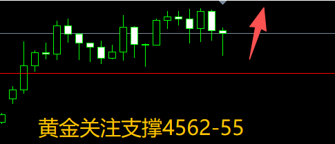 下方支撑依然关注最后一次回踩的低点4562附近,其次就是H4的布林带下轨位置4555附近,这都是可以去进场看涨的位置,防守放在4640,整体来说就是看区间4555-4645就好,尽量卡好点位去进场,看不懂的行情就尽量不要做,留得青山在不愁没柴烧!激进的4620就可以去空了!