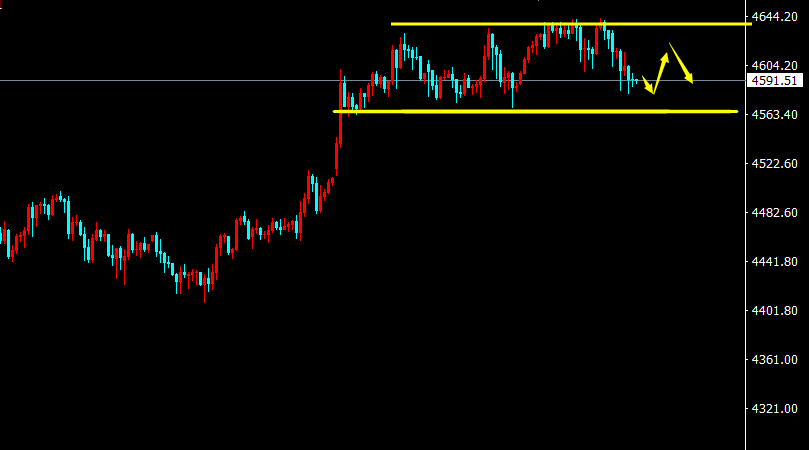 周三市场欧盘突破高点,但是很快就下来了,中枢点位提及4597是产生了短线布局的效果,价格在美盘时段走出精准短线上涨,不容易再突破高点了。基于下方这几个星期有多个跳空缺口都未能回补,跌势启动后对短线是很好的良机。今天靠近下轨,4565震荡下轨在欧盘跌破收低可以顺势介入空头,价格有一定机会重返4500美元!已经失去了开门见山的牛市标志,不适合盲目乐观的搞多了!