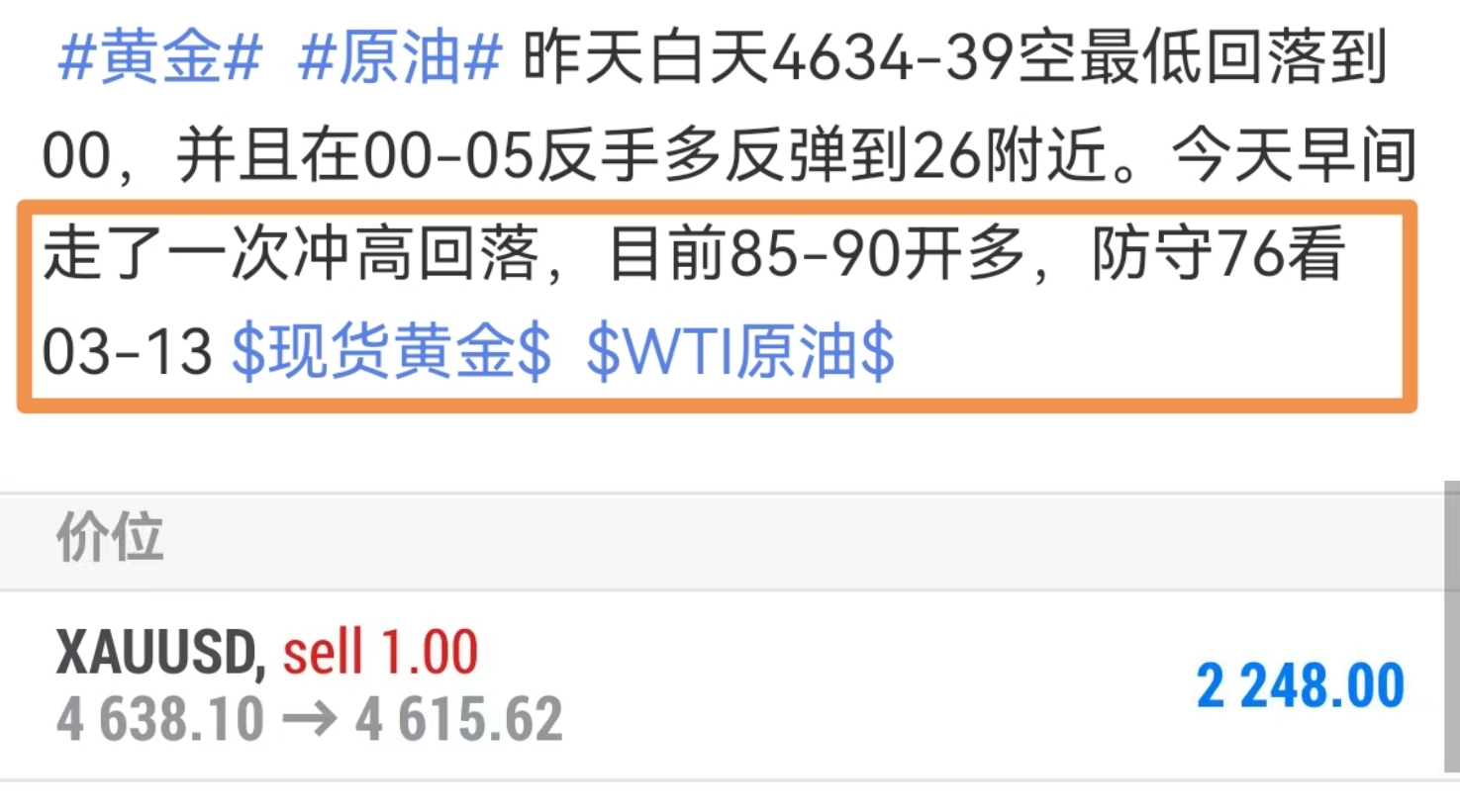 昨日黄金走出冲高回落走势,整体走势跟我们预期是高度一致,午后时段冲高到39-40附近,但是连续两次的历史点位破高延续性都很弱,并且伴随着芝商所CME对于金属baozheng金的调整,从之前的固定数据到现在按照比例调整,同样是对于市场过热的一种调控机制!因此我们昨日提前选择从高位34-39附近进场做空,一直到美盘前出现多次震荡回落,在美盘时段最低触及00附近止跌反弹。而4600整数位刚好是我们计划的多单进场点位,盘中实时提醒00-05反手多,成功反弹到4624-25附近,和我们提前布局高度保持一致!