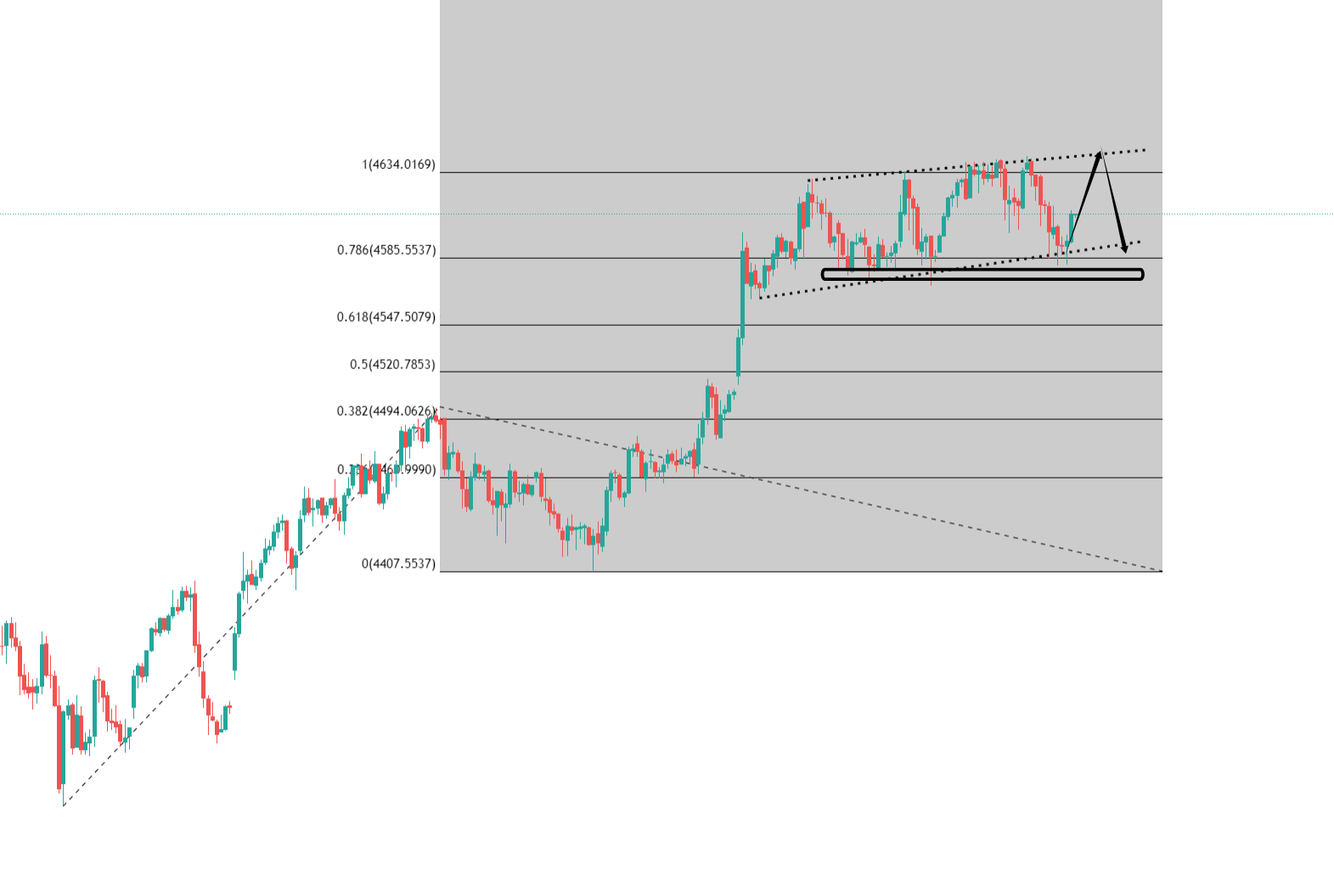 只要没有这个能力,能跌到4585,那我就毫不犹豫的买入,因为它跌下来就说明迎合了我对区间调整的判断,那低点自然也能买涨啊!这又不是看什么大涨,进场后我照样看个20-30美金的反弹利润出局就好,做任何交易都是要有后续布局的,可不是单单为了眼前,当然我以为今天是跟前几天一样的交易情形,这不是发现了有可能是黑色交易日嘛,我就直接跑了。。