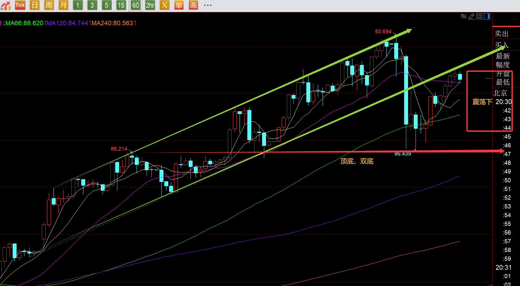 回顾昨日行情走势及出现的技术点: