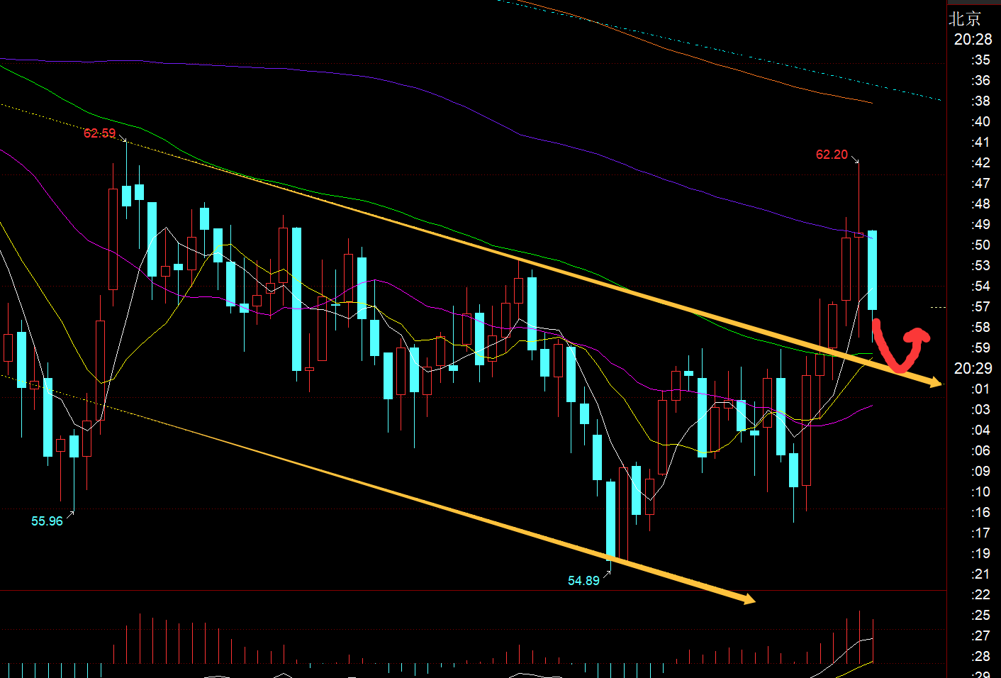 第一,黄金方面:昨日提示价格会围绕相对高位4640-4575区间内继续横盘整理,一直埋伏北上看涨为止是4575上,但价格一直给不到机会,那么只能反复依托通道上轨4640下方承压去看南回测,第一次4630看南,最低下探4618;第二次4637看南,最低下探4622,第三次4633看南,最低下探4600;第四次4635看南,最低下探今日4581;每一次都有短线足够的利润空间,最后一次由于取消了埋伏,错过了今日早间的一波下探;