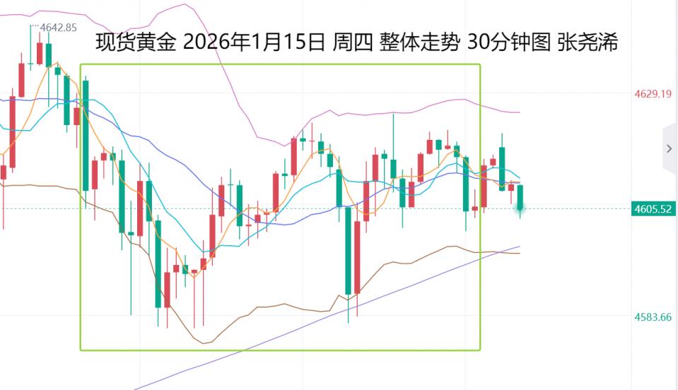 上交易日周四(1月15日):国际黄金触底回升T型收跌,维持着高位震荡格局,但也令短期金价面临震荡调整走低预期,但看涨前景依然不变,如回撤走低,下方关注10日均线及中轨线支撑仍可逢低看涨,如反弹走强打破近日震荡持稳收阳,则可顺势跟进继续看涨攀升。