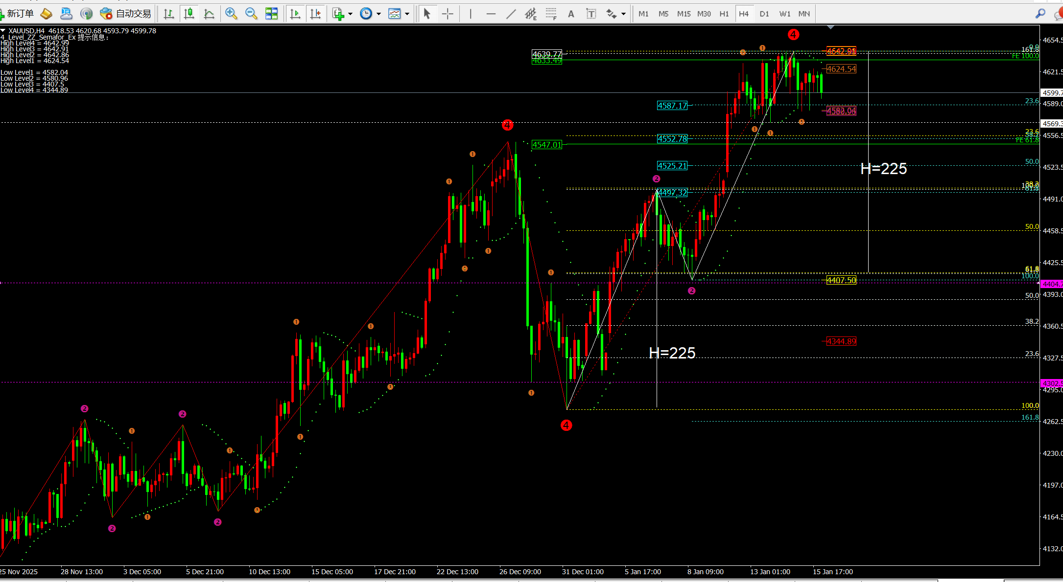 11点4小时收线如果在4610下方,那么空单提前到4515-17附近参与,防守4625,目标4600-4590-4590-4545