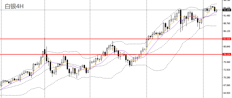 白银收长阳柱,升破新高,日线RSI到达高位,92.50附近存在一定支撑,如下探支撑位一线企稳可做多,短线有望冲击95关口附近。