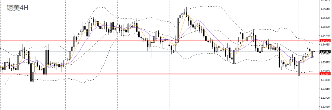 镑美昨日大幅拉升,扭转了近期颓势,日线RSI位于50附近,4小时呈头肩底,1.3380-1.34一带为下方关键支撑,如回踩企稳可进多,上方继续关注1.3450附近阻力。