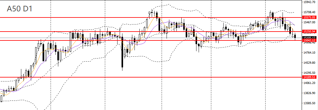 A50周一收十字星,今日亚盘持续下挫,4小时回踩15000一线支撑,短线走势依然疲软,空单仍可持有,如进一步跌破15000,可下看至14800附近。