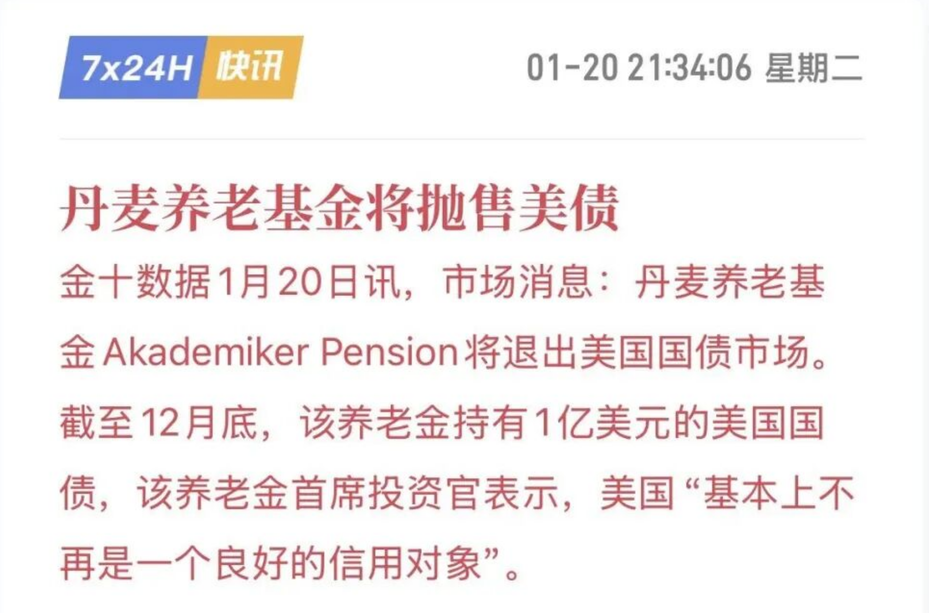 丹麦开始抛售美债,特朗普搞乱了世界,美国信用大打折扣,恐引美债抛售潮。