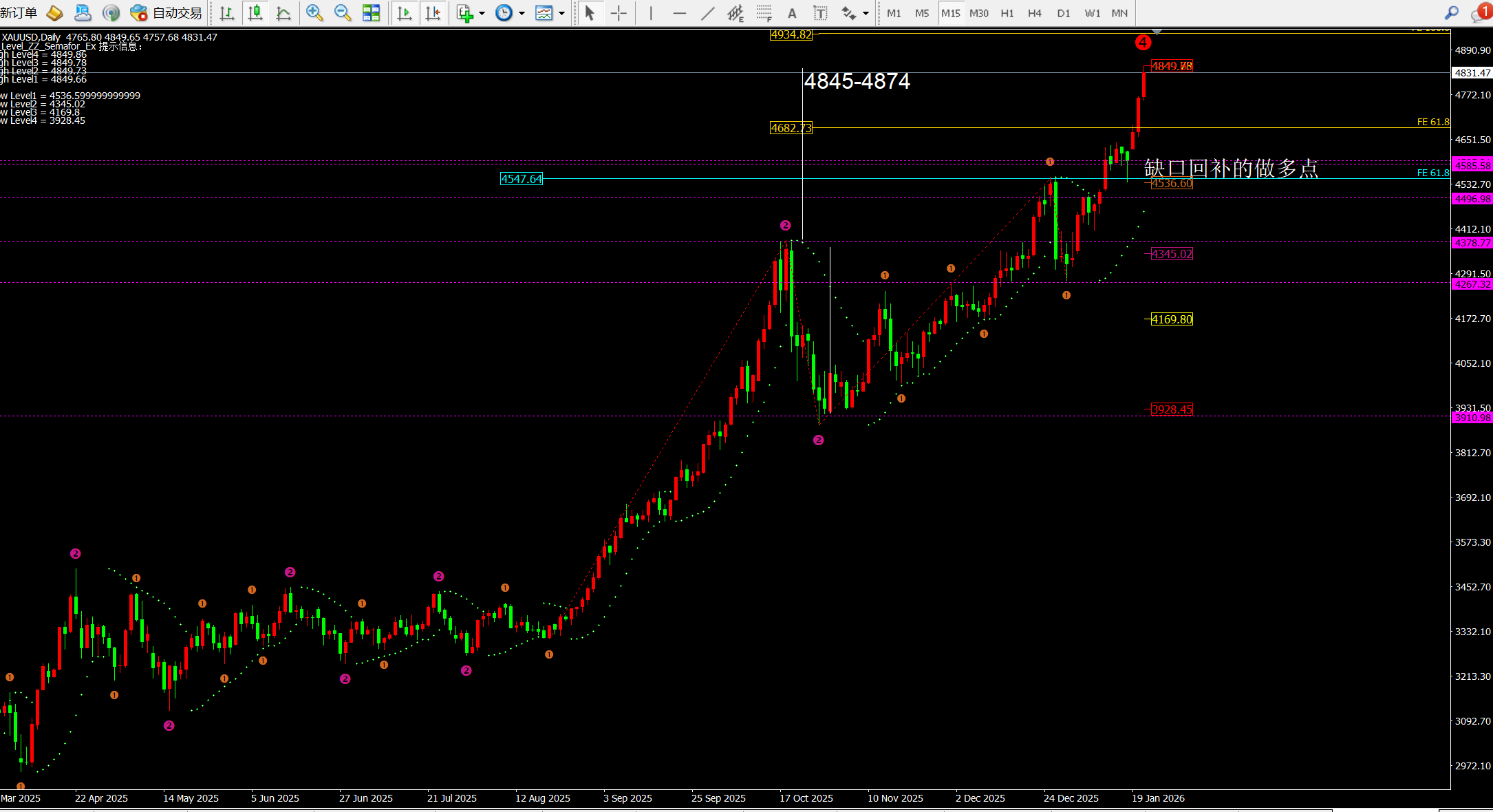 综合而言:黄金依旧保持多头走势,且目前将持续上涨。而回撤基本不会低于早间的低点。所以我们多单得在4790上方去布局,4800-4810-4823都可以是做多点。而上方阻力分布在4845-4865-4875一线以及4935-4955附近。
