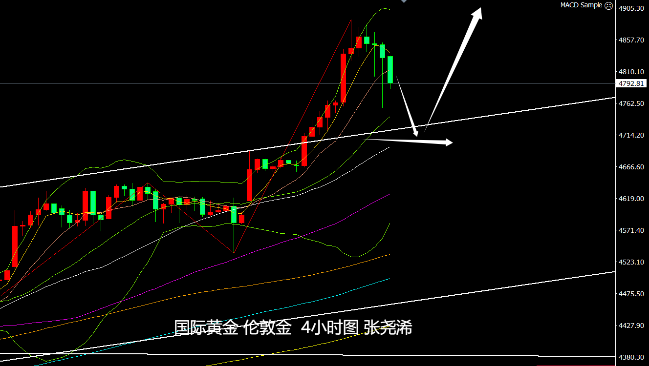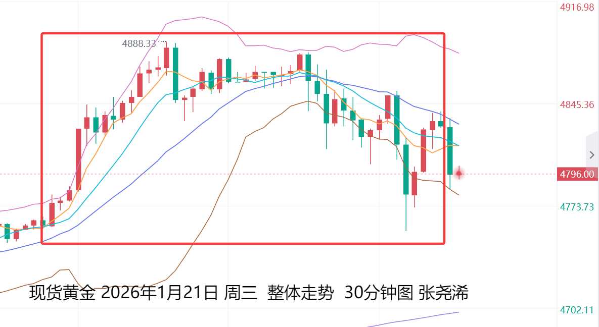 上交易日周三(1月21日):国际黄金日内继续强势拉升超百美元,但最终涨势有所收窄, 因特朗普透露格陵兰岛问题似乎迎来转机,原定于2月1日生效的关税将取消!并在达沃斯论坛上称:不会动用武力来获取格陵兰岛。多头动力减弱,避险情绪缓解,周尾有调整的风险,但调整回撤触及5日或10日均线支撑位置,也是再度入场看涨的机会。