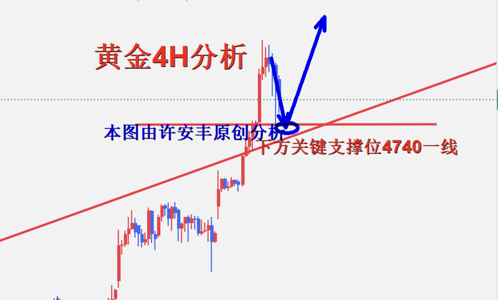 黄金四小时线还是多头趋势,哪怕回落还是处于上升通道中,k线还是处于均线上方,目前k先整体位于4800附近,收下影线了,所以整体改善看涨不变,稳健的在4750布局多