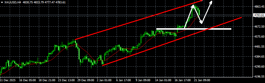 隔夜黄金直接跳水了,因为特朗普不在对欧洲增加关税,避险情绪降温,大阴线直接暴跌下来了,一度下跌到4750附近,但整体多头还是没有变