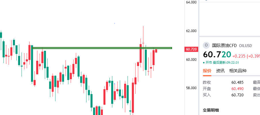 原油现在60.7附近继续空,防守61.5,目标看59/58一线不变