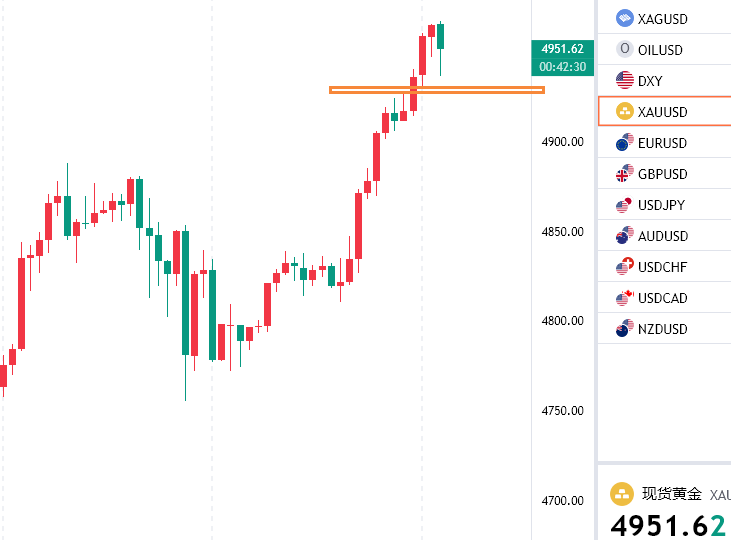 黄金昨日开盘从4833一线下跌至4777附近后反弹4809一线;之后价格二次探底4772附近反弹上破4798以及4809到达4838一线,而后价格维持在4838-4810区间震荡一段时间后再次拉伸破位高点到达4940一线。