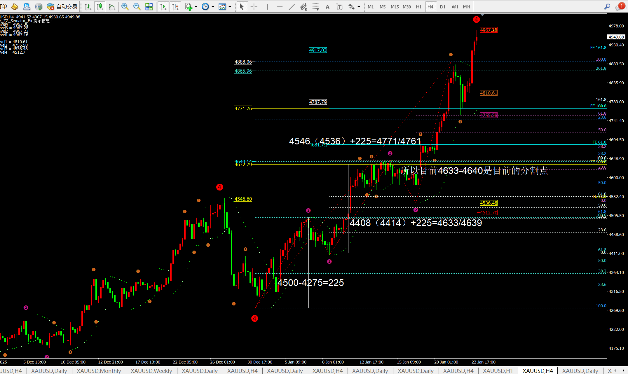 综合而言:因为日线目前蜡烛图偏离均线,所以日内有一定的回落空间,但是目前多头走势保持不变。短期4小时也在高位震荡还未出现回落迹象,所以空单需要耐心等待。虽然小时线出现了回落信号,但是因为4小时和日线所以回落空间比较小。也就是早间的回落空间应该在4916-17左右,极限4880-90附近。然后价格二次上涨等待4小时出现回落的信号,并且这波4小时的回落也基本可以带动日线级别的回落。那么日线级别短期的上升接近尾声,下周就开始需要高位布局空单看4650-4540-4400附近。