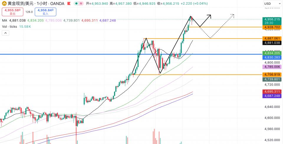 朋友们,早安!1月23日亚市盘中,现货黄金(XAU/USD)再度刷新历史纪录,最高触及4967美元/盎司附近!