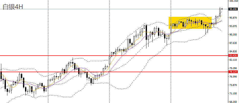 黄金连日走高,站上日线布林上轨,日线RSI到达超买区,4小时升破4900大关,上行空间打开,4930附近企稳可继续进多。黄金/人民币如于1103一线企稳可进多。