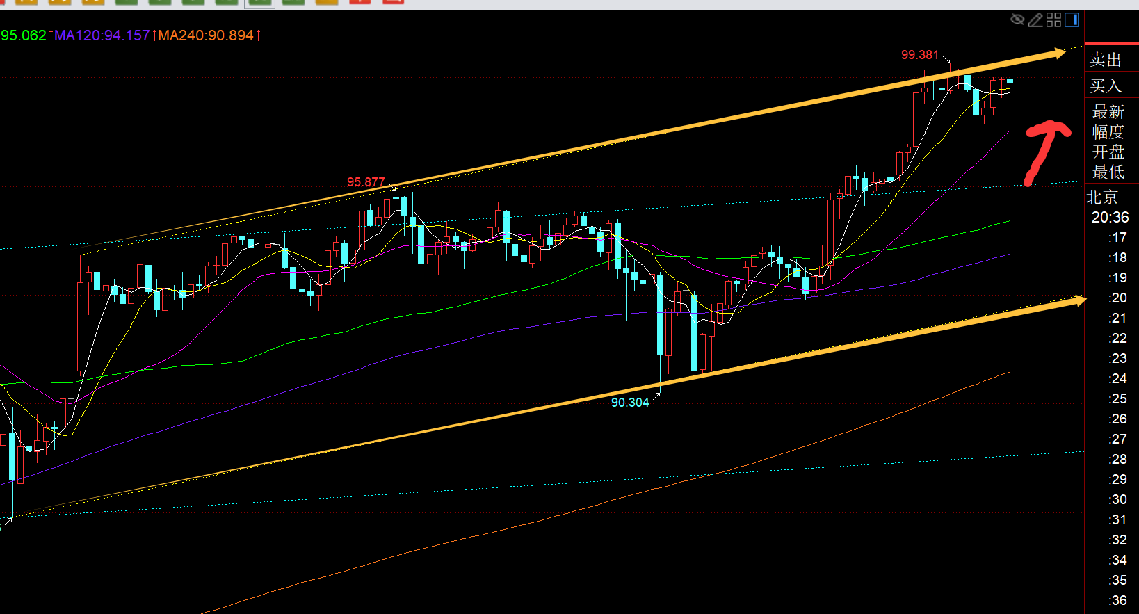 第二,白银方面:由于现在做白银基本都是沪银,只需控制好仓位即可,不用太在乎短线的来回扫荡,依旧是波段北上为主,所以可拉开距离去布局,成功率依旧很高,前几日一直强调91-90可继续波段北上,再次符合预判,成功拉升至99;