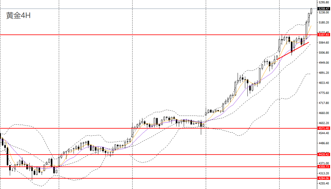 黄金日内保持强势格局,在避险以及美联储宽松预期的双重利好支持以及贵金属的强势共振一起推动下,黄金基本没有太多回踩的强势格局延续,早盘一路走高冲击5200关口后走出小幅回踩到5174附近再度强势走高,站稳5200之后基本就没有回头的走高,欧盘时段加速冲击上5300关口,触及5311附近跟周二的5110有异曲同工之妙,目前也是走出一波快速回踩到了5238附近,晚间的话关注5250附近支撑低多,有靠近5300附近位置可以考虑做空一次看看调整,有来有回的行情才是正常的市场表现!