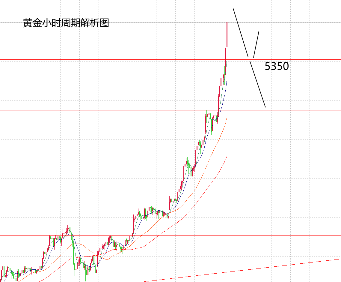 实际上涨是在今天早上亚盘开盘出现拉高,也跟美联储继任者的偏鸽的看法有关,加上美伊可能随时热摩擦的局势,国际国内大量买入黄金或者黄金类等资产,很明显,国际上已经让经济去货币化(特别是美元),新的时代已经到来,黄金是这个时代宠儿!今天继续在基本面影响之下,大体看涨黄金,即使已经到了5600,也不轻易言顶,这是今年看黄金一直强调的原则,昨天还预测能到5500,今天继续提高目标点位看5800,所以,只要整体基本面不变,黄金看涨不变。但需要在技术面提醒大家的是,日线九连阳,在技术形态中,往往有这种说法,九九必归一,上周到本周已经连续大涨了半个月,又到月底收盘事件,今天结束就连阳可能性很大,日线如果收阴,5600就是短期顶部,黄金就会走高位震荡或者真正的回落空间,所以,今明两天,大家要注意黄金调整的风险。在这里技术面的支撑点在5350附近,跌破5350技术面的看法成立,可以考虑继续调整,不破5350,强势下黄金继续看涨。