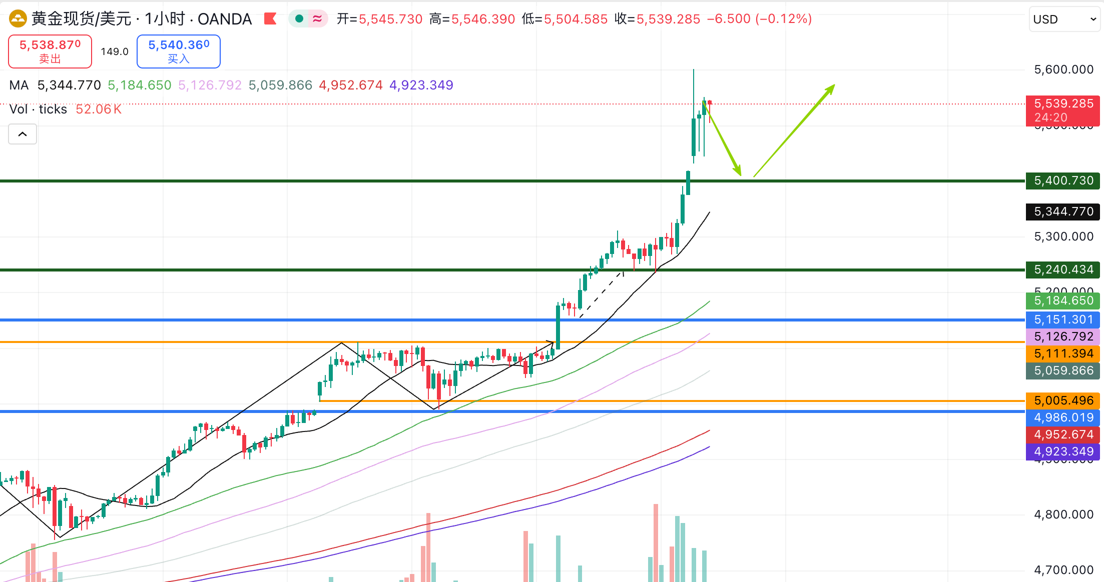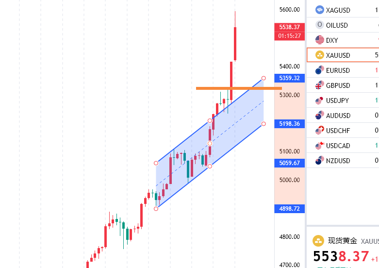 从小时级别来看,整体仍处在明确的多头趋势中。高点与低点同步抬升,属于典型的顺趋势推进行情,当前价格运行在上升通道上沿附近,短线存在一定的获利盘消化需求。