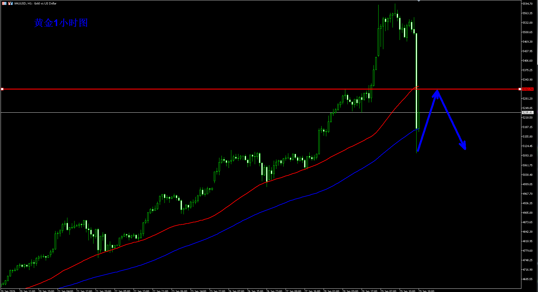 从之后的走势看,昨日周四亚盘开盘后,黄金短线拉升30美元,延续隔夜收盘前的上冲势头,并在之后继续震荡上涨,很快突破5500美元整数位置,刷新历史新高至5596美元,此后金价一直保持高位震荡,期间曾再度试探5596美元遇阻,未能成功取得突破,直到美盘盘中,黄金短线跳水,不到2小时急跌近400美元,最低至5105美元,不过金价很快企稳回升,收盘前一度站上5400美元,显示了较强的逢低买盘力度。总体来看,黄金开盘再次冲高,比我们的看涨预期更加强势,金价冲高之后盘中大跌,也符合我们注意获利了结导致金价短线回落风险的预期。