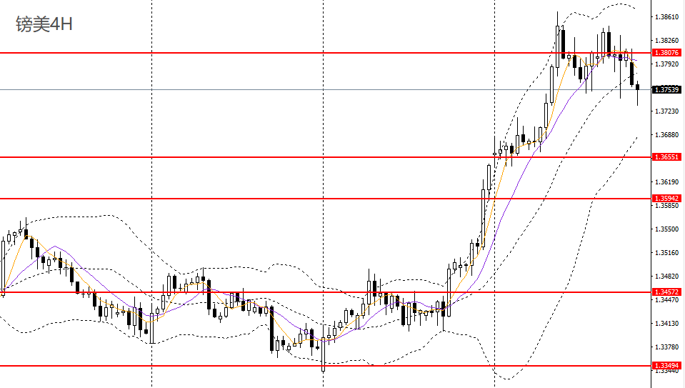 镑美周三收十字阳线,今日亚盘延续阴跌,失守5日均线,4小时下破关键支撑1.3750,1.38关口附近承压可进空。
