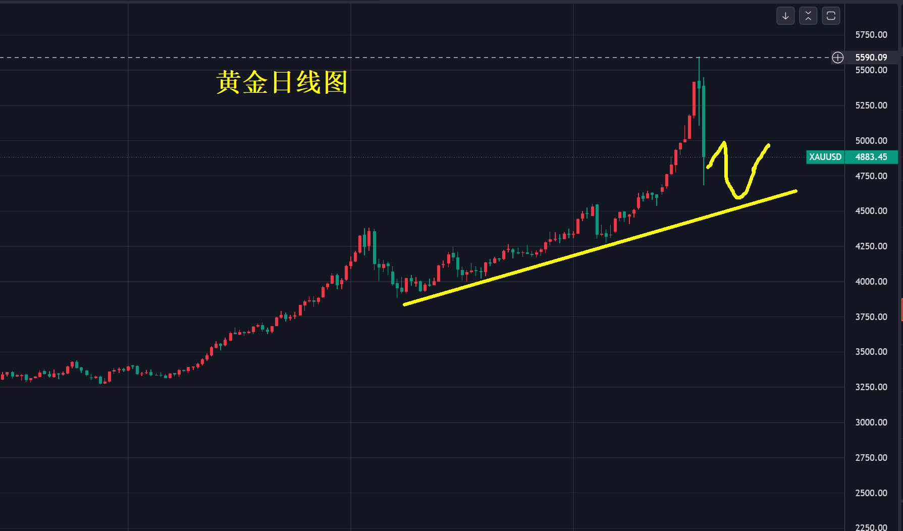 我在上周五文中警示5100美元非常关键,这里直接决定后市方向,牛市急跌不可怕,但二次反弹后再次击穿前低点,就已经为暴跌埋一伏笔。