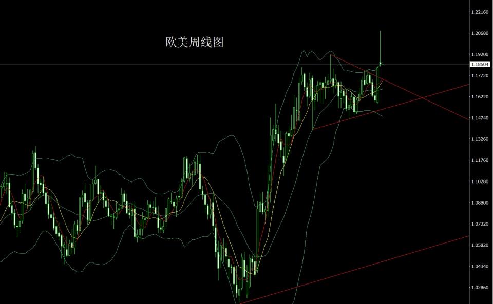 欧美市场上周高开在1.18634的位置后行情先回落,周线最低给到了1.18329的位置后行情强势拉升,周线最高触及到了1.20825的位置后行情尾盘回落,周线最终收线在了1.18514的位置后,周线以一根上影线极长的射击之星形态收线,而这样的形态收尾后,本周有继续回落的压力,点位上,今日1.19100空止损1.19300,目标看1.18500和1.18300和1.18000.