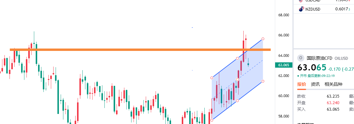 原油反弹63.7附近继续空,防守64.5,目标看62/61一线