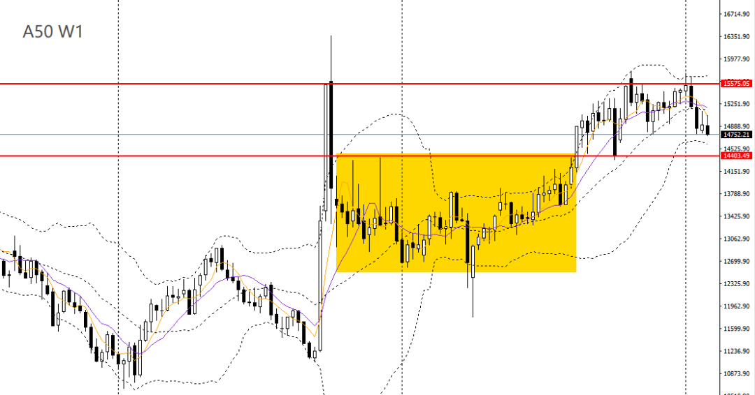 A50上周收倒锤阳线,RSI位于50左右,波段仍趋于震荡。周五收跌,徘徊于5日、10日均线附近,4小时未能正式升破15000关口阻力,下方继续关注14800一线支撑,如再度企稳,空单可离场。