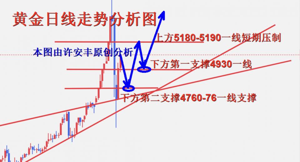 从技术面黄金短期超跌修复行情确立,多周期指标形成共振看涨格局,多头势如破竹,已经突破5000关口短期压力,MACD指标在低位形成金叉且红柱持续放大,空头动能烟消云散,RSI指标从超卖区快速回升,虽接近超买阈值但多头势能依旧充沛,但是越完美的走势却孕育着更大的风向,我们可以大胆的想象,在高位接盘之后,是否能够轻而易举的让我们脱离困境,许安丰认为首要关注整数关口5100一线压力,大起大落的行情我们必须要谨慎对待,黄金整体还是震荡上行修复为主,短期还将延续多头冲刺,操作上继续保持回踩做多思路进行。对黄金感兴趣却无从下手或者操作不理想的朋友可以与老许本人前来沟通交流。