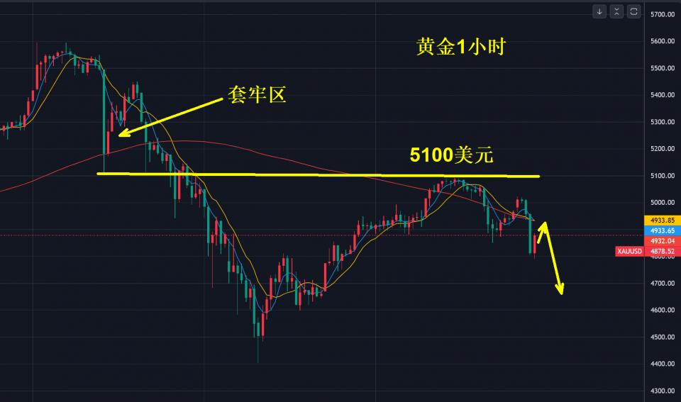 昨日周三黄金刷新本周高点5091美元,未能一鼓作气,突破5100美元整数位置,走势开始震荡承压,美盘开盘后,金价失守5000美元整数位置,跌至4849美元企稳,收盘前反弹4970美元;周四开盘后,黄金跳空高开,短线涨至5023美元遇阻,此后再次震荡承压,跌至4790美元企稳,反弹4940美元遇阻,目前交投于4878美元。