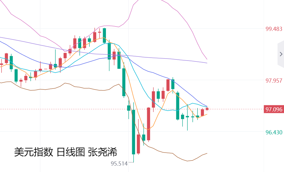 展望今日周二(2月17日):国际黄金开盘继续延续周一回落压力,以及中轨和短期均线的阻力压制而表现走低,另外,美元指数近日保持震荡回升趋势,也对金价产生一定利空。那么,短期来看,金价仍面临震荡调整预期,下方关注30日均线以及60日均线支撑的再度入场机会。