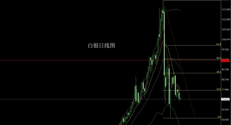 白银市场昨日开盘在76.223的位置后行情先回落给出72.997的位置后行情急速拉升,日线最高触及到了76.864的位置后行情强势震荡回落,日线最低给到了71.876的位置后整理,日线最终收线在了73.478的位置后行情以一根下影线长于上影线的大阴线收线,而这样的形态收尾后,今日的行情回踩空,点位上,今日75.3空止损75.6,目标看74.2和73.5和72和71.8,跌破看71.3和71-70.7.