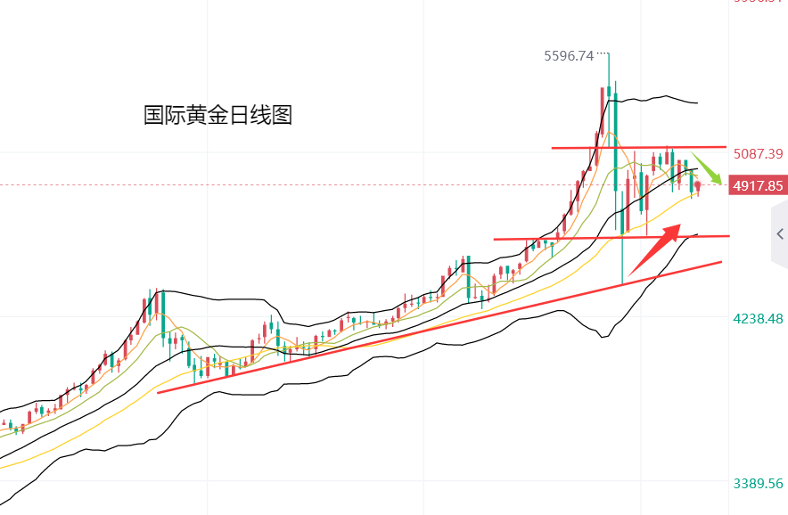 昨日周二黄金震荡承压,金价呈现阶梯回落,亚盘开盘不久,金价急跌超过60美元,小幅反弹后,于亚盘盘中急跌近90美元后反弹,美盘开盘后,黄金再度急跌近80美元,失守4900美元整数关口,刷新一周新低至4842美元,全天跌幅一度超过2%,短期表现偏弱运行;周三开盘后,黄金短线企稳反弹,目前交投于4914美元附近。
