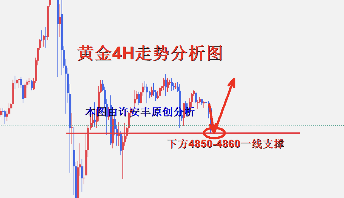 黄金目前在日线走势上窄幅震荡区间,短周期均线开始平稳震荡走势意思,4小时级别走势上目前维持着横盘震荡,K线也继续承压短周期均线维持偏弱一些走势,倾向于在日内可能会继续维持这样的节奏,短线关注下4915-20一带的压力带。小级别周期走势上目前走出一波反弹,短线走势稍偏强一些但是延续的力度可能不会走的太大,只要金价不破下方支撑4810-18位置,不然我们不考虑做空进场。如果你目前操作不理想,希望许安丰能让你的投资少走弯路,欢迎前来沟通交流!