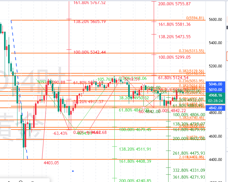 支撑的话目前很明显,短期重点支撑就在4950-45区域,也是下方的多空强弱分界线;之上多头还有反复拉高,下破那基本上就是回撤昨天强弱分界线4910以及昨天低点4850区域,进一步4765-70和4655-65美元区域。说白了今天重点关注上下多空关键位哪个先破,然后顺势运行一波,再折返回来!操作上,盯紧多空关键位和支撑压力,制定操作策略(仅限于杠杆产品,非杠杆产品2月10日的视频,已经给出操作方法)!