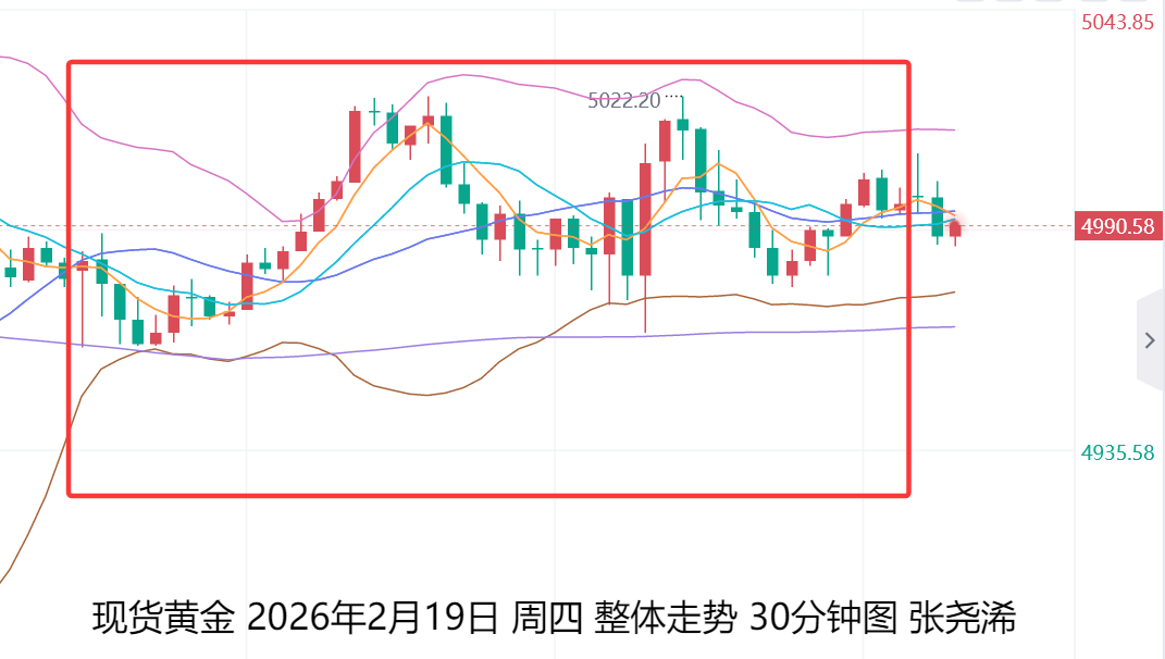 上个交易日强调过,黄金以4840为防守看震荡上行,并且如果破位4950,并且站稳在此之上,黄金就是震荡,不会是极弱表现,继续上看就看5050,5120,而实际走势,在地缘局势的影响下,黄金开盘直接上涨,并且在优盘突破4950,在美盘最高上涨至5025,实现了山海的预期,所以,如果你在周三觉得黄金跌倒4840后会延续弱势,那就大错特错,其实很明显黄金还是一个震荡走势。包括今天也一样,暂时黄金没有站稳5120之上就难以延续强势,所以,黄金还是一个震荡状态,下方的支撑预计在4950,上方逐步看5050,5120得失。当然,由于大趋势是多头不变,所以山海还是看好黄金会向上突破,并且站稳5120之上,能走出一个多头趋势的延续性,因此,今天依旧是等待机会下个上布局。今天不破5050短线看,破位5050可以留轻仓看一下下周的表现,下周可能就不会给你震荡的相对低点位置了。
